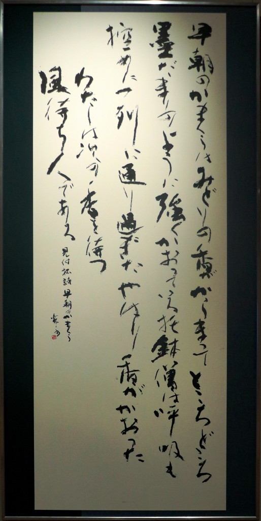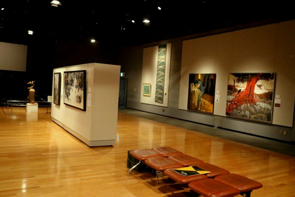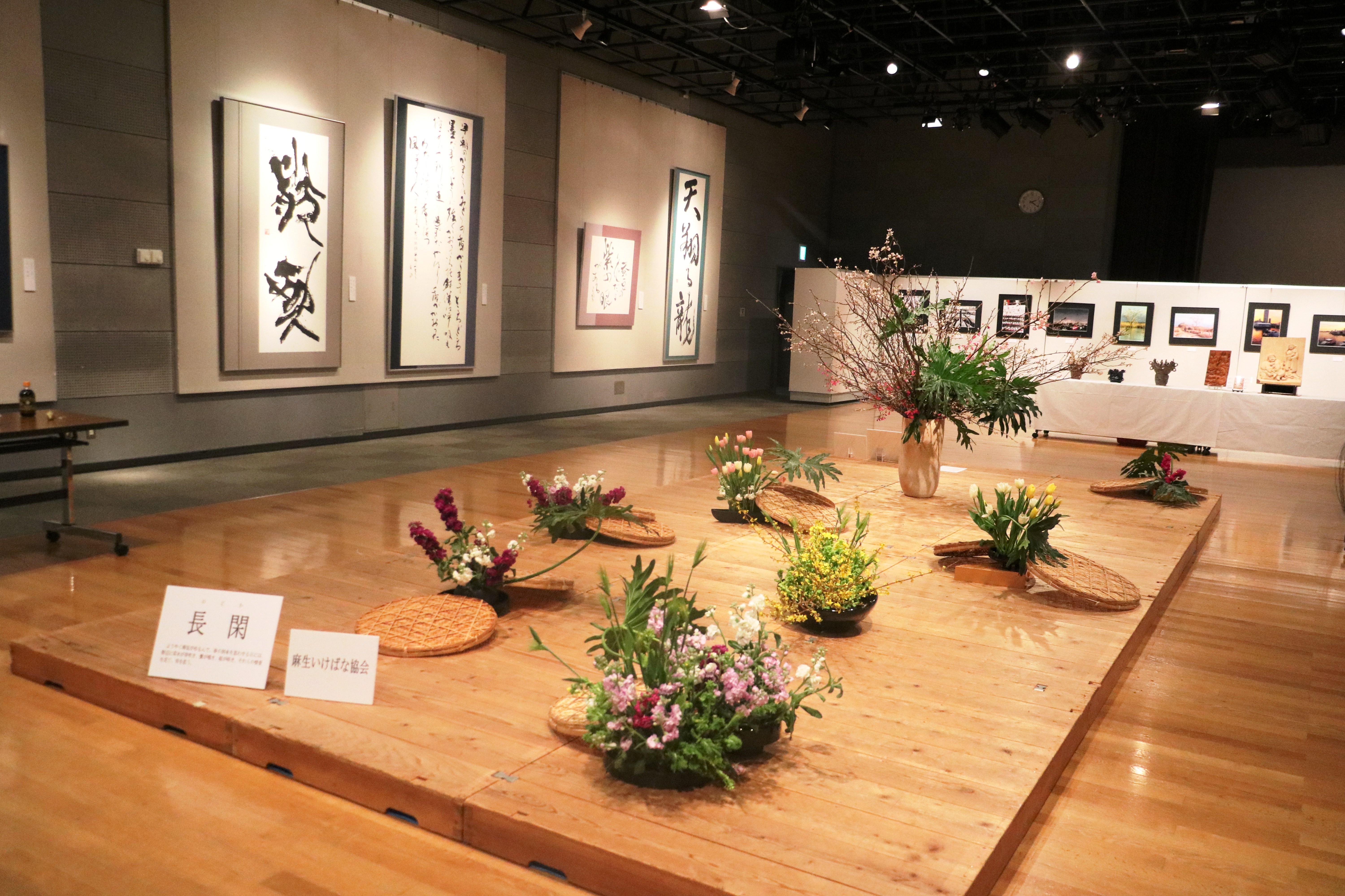 | 本事業においては、会場を半分にわけ、麻生区美術家協会の作品展示と麻生区文化協会美術工芸部会の作品展示の2つを平行して行います。 美術家協会は、洋画・日本画・彫刻・工芸の大作をを展示しました。文化協会は、いけ花展示、絵画、書、写真、工芸、彫刻の展示に加え、文化協会主催の「舞台衣装の民藝の女優さんを描くデッサン会」参加者の作品を展示します。 | ||||