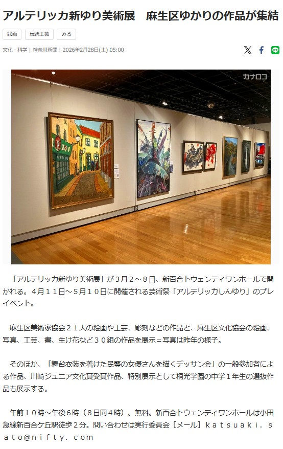![]() | アルテリッカ新ゆり美術展2026 | ![]() | |