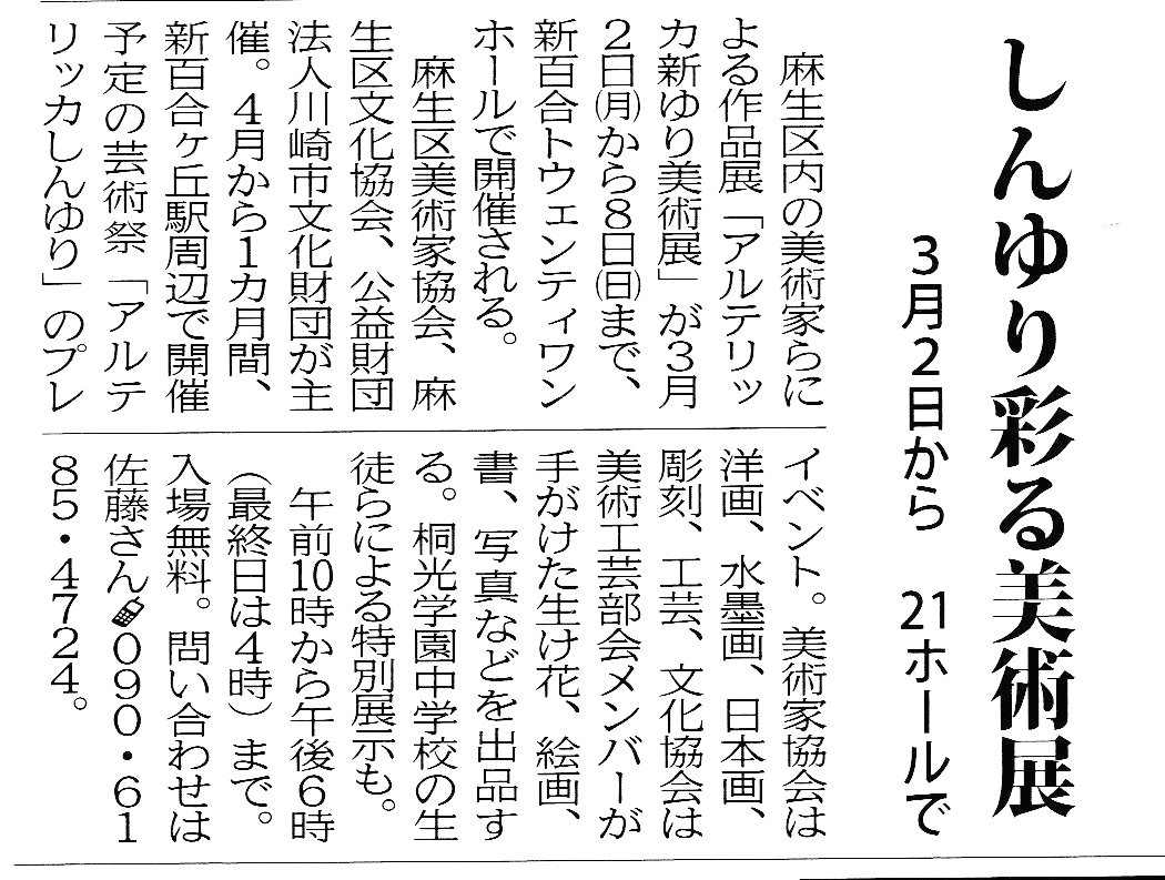 | 2020.3.2-3.8 | アルテリッカ新ゆり美術展2020(2020.3) |